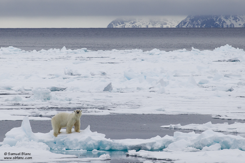 Les photos ci-dessous ont été réalisées au Spitzberg, dans l’archipel du Svalbard. Celui-ci se trouve à 600 km au nord de la Norvège et au nord-est du Groenland. Les milieux naturels y sont très variés (calotte glaciaire, vastes zones de toundra, désert de pierres…) et la plupart des espèces animales emblématiques du Grand Nord sont présentes : ours polaire, morse, renard arctique, oiseaux… Si aucun peuple autochtone ne s’y est installé, l’histoire du Spitzberg a été marquée par les chasseurs de baleines, les trappeurs et l’exploitation du charbon. De nos jours, plus de 2 000 personnes y vivent.